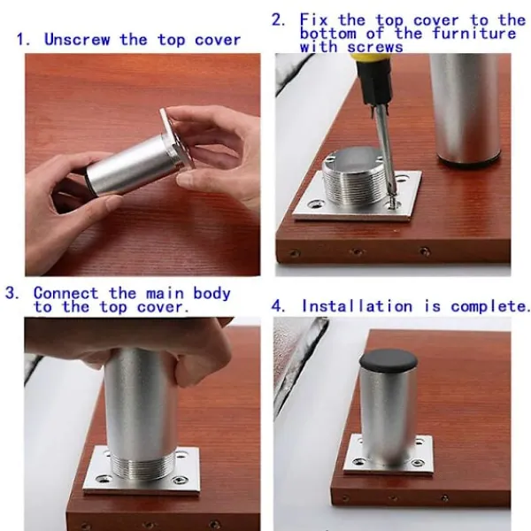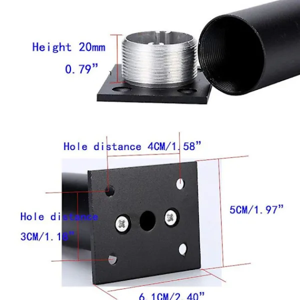 1. Möbelbenen är tillverkade av högkvalitativ aluminiumlegering, som är korrosionsbeständig och inte rostar, och rörväggen är förtjockad för bättre lastbärande; PVC-dynan i botten av benet är halkfri och slitstark och kommer inte att röra sig.2.Rördiameter: 38mm/ 1,5″; Hålavstånd: 30mm/ 1,2″, 40mm/ 1,57″; Hålsdiameter: 5mm/ 0,2″3.Förtjockad 4mm fyrkantig lastbärande basplatta kan justeras, Bottenplatta 60x50mm/2,4″x2″, öka kontaktytan, stark bärförmåga. Justerbart höjdintervall: 0-15mm; Möbelben kan justeras från 80 mm(3,1 tum) till 95 mm(3,7 tum)4.Ytan på möbelstödsbenen är anodiserad, Kan vara vattentät och fläckbeständig.5.Brett användningsområde: Dessa möbelfötter är ett idealiskt val för soffben, skåpben, sängben, soffben, skåpben, TV-bänkben, badrumsskåpsben, etc.