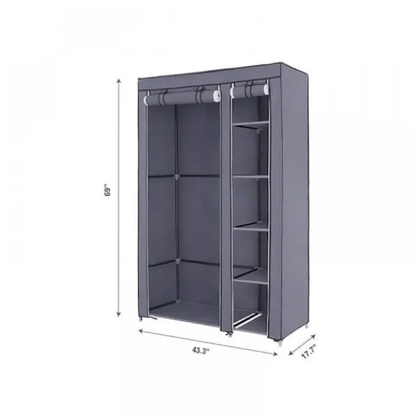 Vår 170 cm bärbara garderob är tillverkad av utvalt fiberduk, högkvalitativa stålrör och PP-plastkopplingar, vilket är hållbart och uppfyller dina långsiktiga förvaringsbehov. Storleken på klädskåpet gör det idealiskt för att organisera dina små rum och walk-in-garderober. Den uppgraderade flyttbara klädstången och 6 förvaringshyllor ger dig tillräckligt med utrymme för dina längre kläder och vikta kläder. Ett dammtätt överdrag med dragkedja medföljer för att hålla dina föremål dammfria och de vattentäta tyglagren är lätta att rengöra. Det kommer att vara mycket praktiskt och funktionellt. Tveka inte att köpa en!