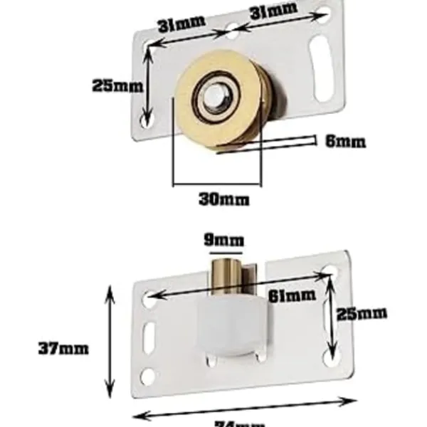 [Smidig Glidning] Rullpaneler och stödpaneler gör att skåp, garderober och andra skjutdörrar glider lätt och fungerar smidigt. [Skjutdörrshjulstorlek] Rullpanelen är 74 mm lång, 37 mm bred, rulldiameter 30 mm, rullspårbredd 6 mm, perfekt för skjutdörrar, fönster, garderober, etc. [Material] Detta dörrhjul är tillverkat av rostfria stålpaneler och mässingsrullar för att säkerställa långvarig hållbarhet och korrosionsbeständighet. [Paket] Varje förpackning innehåller 4 rullpaneler, 4 stödpaneler och 4 lokaliserare, vilket ger en skjutdörrsmontering för enkel installation. [Kompatibilitet] Kompatibel med olika skjutdörrar, såsom garderober, garderober, etc., lämplig för olika möbelapplikationer.