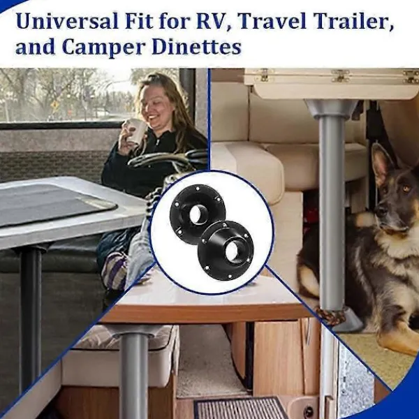 Standard RV Bordsfäste: 6,5 tum ytterdiameter och 2,25 tum innerdiameter, 2-delars RV bordsfästet är speciellt utformat Kompatibelt med båda ändarna av bordsstången. Passar Kompatibelt med de flesta standard RV-bord med piedestal eller centrerade baser.