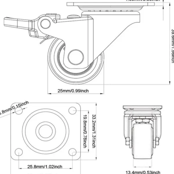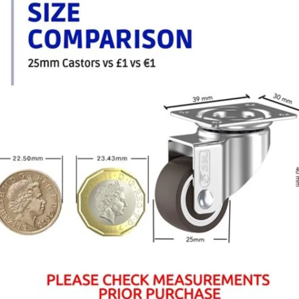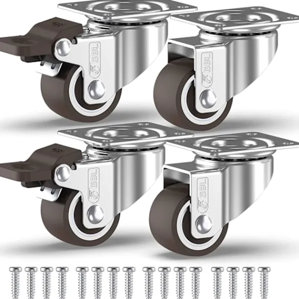 • 4 små hjul till möbler + skruvar 25mm 40KG transporthjul set | Svängbara hjul med broms | Hjul för pallmöbler | Möbelhjul