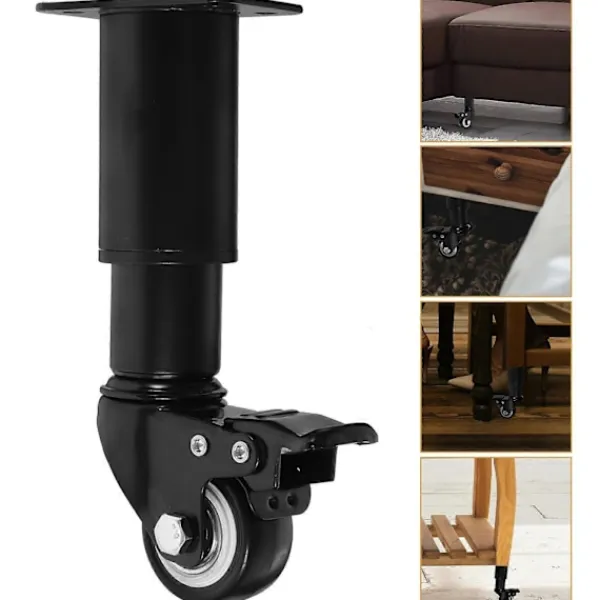 -Justerbara möbelben i metall med roterande hjul lämpliga för skåp, soffor, sängar och soffbord.