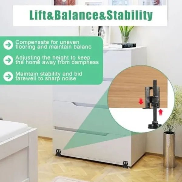 【Brett användningsområde】Justerbara fötter för att stödja skåp, bord, arbetsbänkar, soffbord, garderober, soffor, etc. är ett praktiskt verktyg för familjer eller kontor.