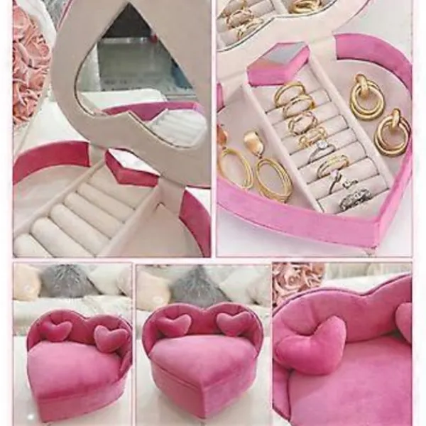 Funktioner: Förhöjer din smyckesorganisation med dessa europeiskinspirerade simulerade små möbler, en dubbel soffformad plysch smyckesdisplaybox som kombinerar elegans och funktionalitet.