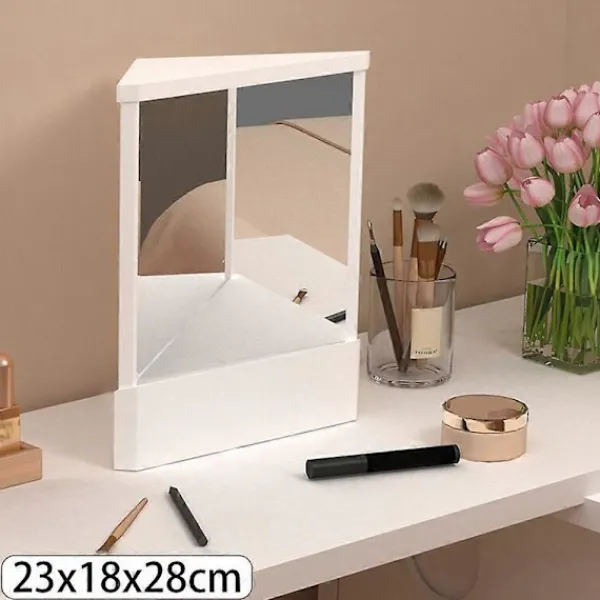 Stabil Bas: Sminkspegeln har en plastram, triangulär stöddesign, är stabil och halkfri och kan stå fritt på skrivbordet.