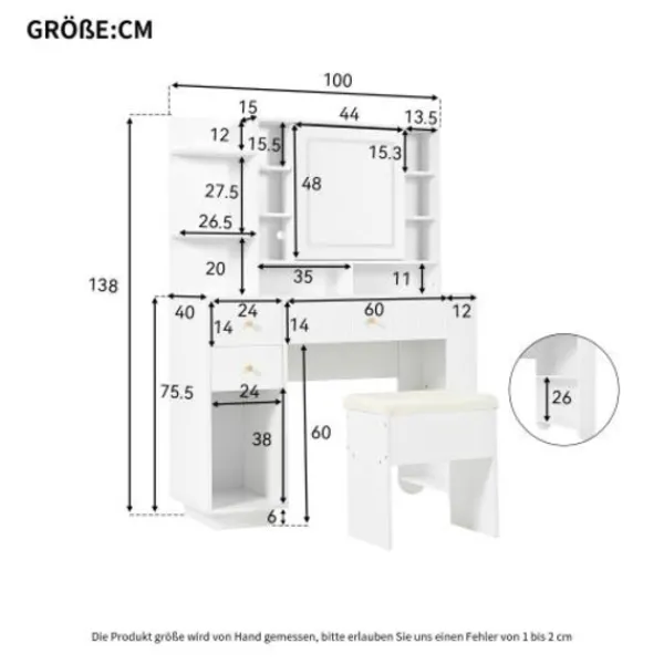 Enkel installation: Tack vare de detaljerade instruktionerna kan sminkbordet enkelt monteras. (Vänligen följ steg-för-steg-instruktionerna för att spara tid.