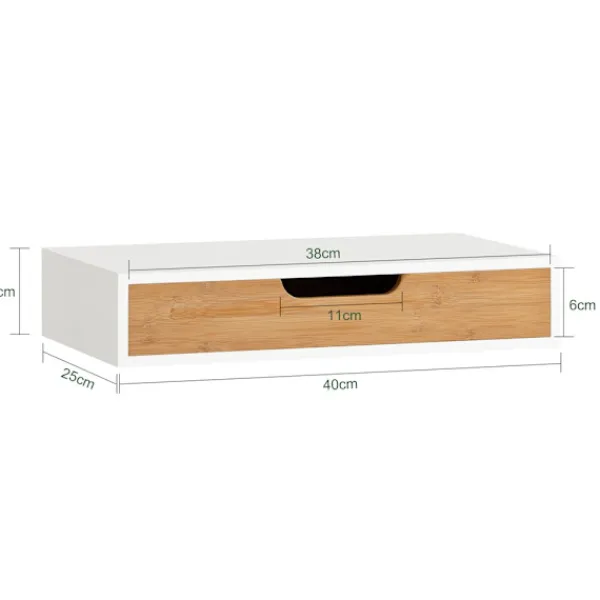 Den enkla och raffinerade designen gör den passande i i princip alla inredningsmiljöer. Den är lätt att montera och fästa på väggen, och allt nödvändigt material finns i förpackningen. Tack vare sin kompakta storlek är den idealisk även för mindre utrymmen, samtidigt som den erbjuder praktisk yta. Bordet kan även användas som ett elegant soffbord.