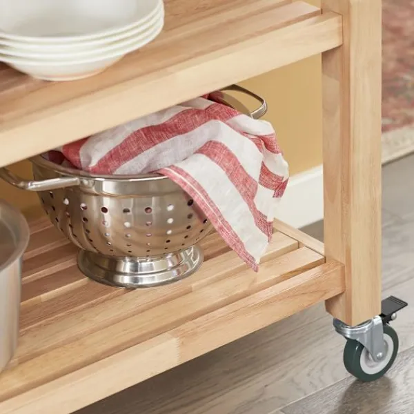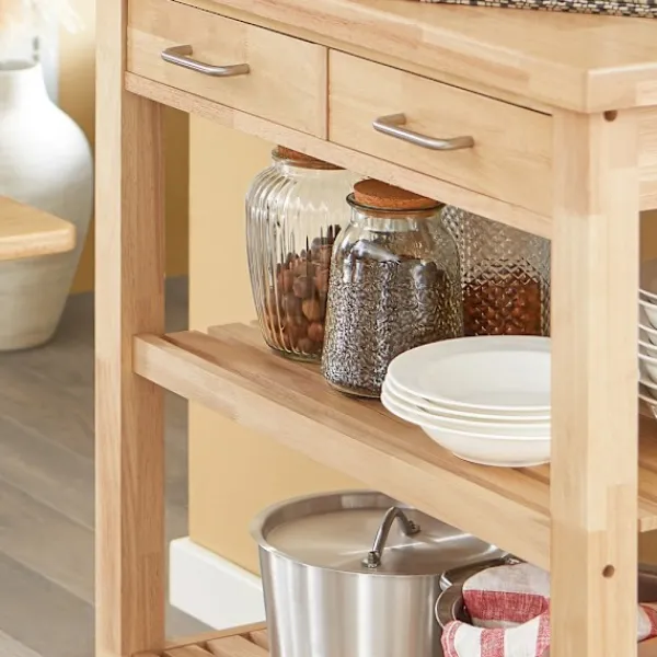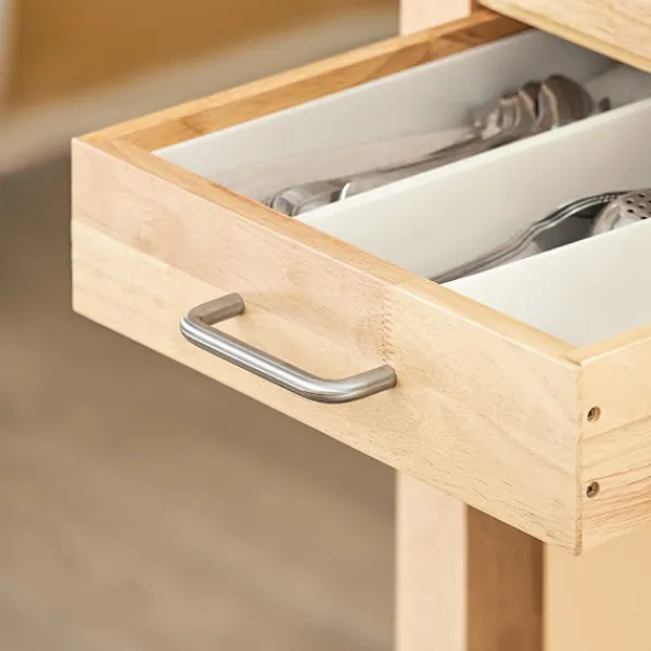 Vagnen med sin eleganta design är extremt mångsidig och gör ett fantastiskt uttalande i alla rum. Om ditt problem är brist på utrymme är denna enkla och eleganta möbel precis rätt val. Med sitt stora inre utrymme erbjuder den kapacitet att lagra tallrikar, dukar och andra köksredskap. Trots sina små dimensioner hittar den lätt sin plats. Vagnen har en praktisk låda och två hyllor, perfekt för förvaring av dina kökstillbehör.