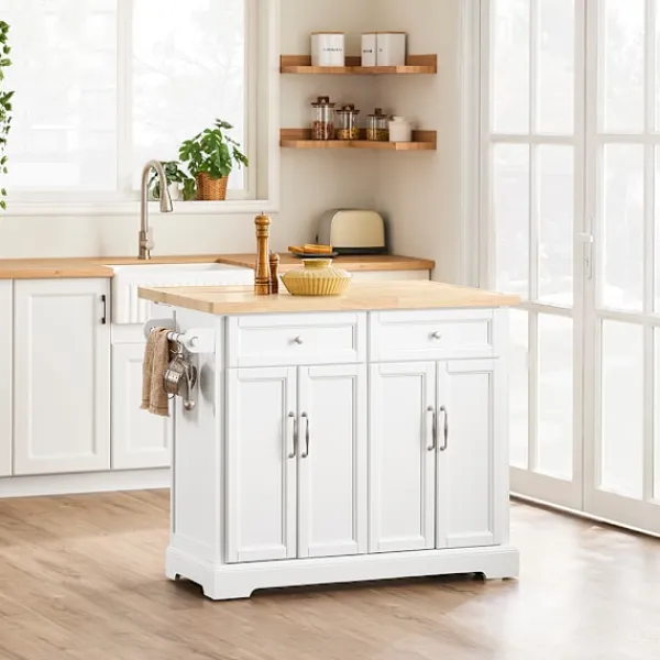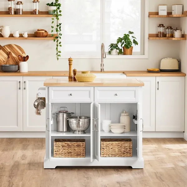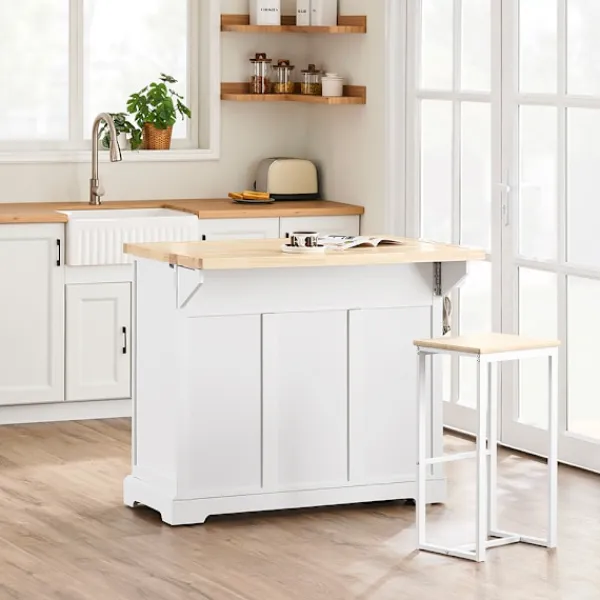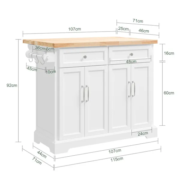 Denna mobila köksö kombinerar gedigen kvalitet med smarta förvarslösningar. Den är tillverkad av hållbara material och klarar en last på upp till 78 kg. Köksön levereras i två platta kartonger med tydliga monteringsinstruktioner för enkel sammansättning.