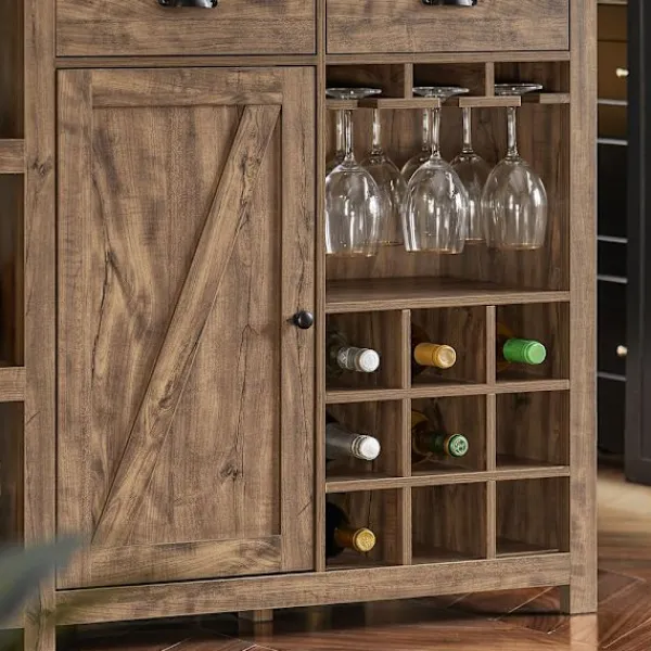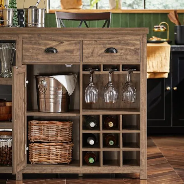 Denna eleganta bruna skänk i lantlig stil förvandlar ditt kök med sitt öppna utseende. Perfekt för gourmeter som älskar att laga mat.