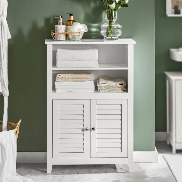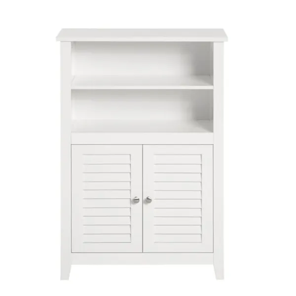 - Optimerad förvaring: Två öppna fack och ett skåp med luftgenomsläppliga lamelldörrar