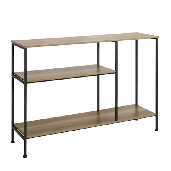 Med sitt vackra designuttryck och praktiska funktion blir denna hylla en perfekt möbel för ditt hem. Den industriella svarta metallramen ger ett stadigt intryck, medan ytan med träutseende skapar en varm och inbjudande känsla. Hyllans generösa mått ger dig gott om utrymme att organisera och visa upp dina favoritsaker, samtidigt som den starka konstruktionen säkerställer långvarig hållbarhet. Produkten är enkel att montera och är speciellt utvecklad för användning i hemmet.