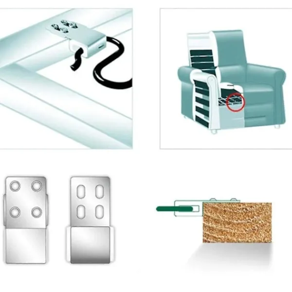 Funktion: Den ger ett brett stöd så att fjädern kan installeras säkert och tillförlitligt. Detta är den bästa fjäderklämman för att säkra soffan.