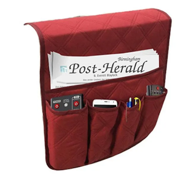 1. Storlek: Lämplig för de flesta soffor, divaner och fåtöljer. 2. Tillverkad av högkvalitativ polyester, slitstark och mjuk, utsökt utförande, sparar utrymme, gör dina saker snygga och rena, lätt att tvätta. 3. Vikbar design, sparar maximalt utrymme i vardagsrummet, packas undan på några sekunder när den inte används. 4. Skydda armstöden på din soffa eller favoritfåtölj från överdrivet slitage. 5. Utmärkt användning: Utmärkt organizer-väska håller din iPad, fjärrkontroller, spelkontroller, glasögon, mobiltelefoner organiserade och lättillgängliga med expanderbart band för tidningar och magasin.