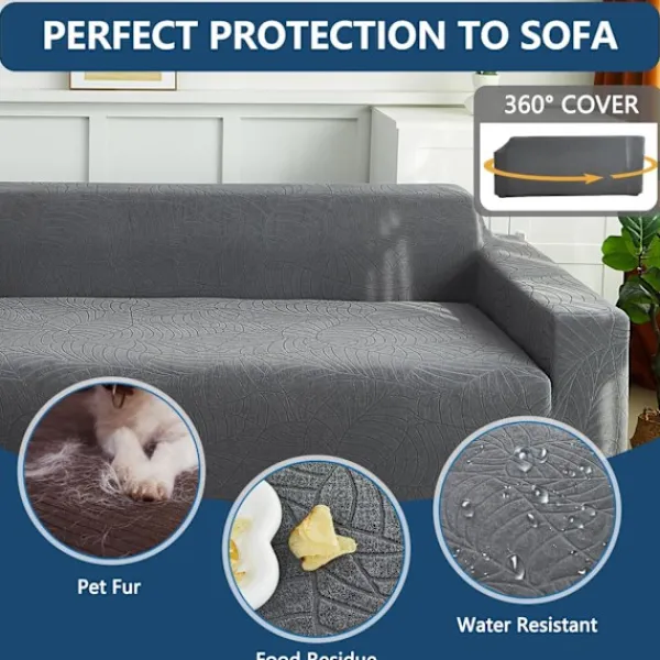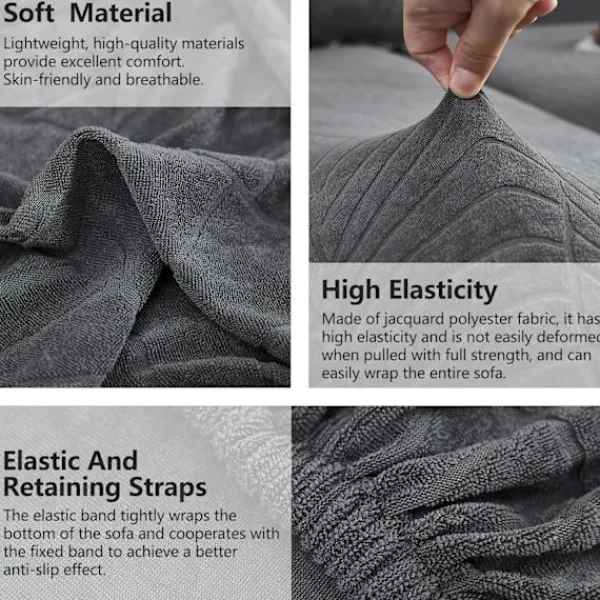 Premiumtyg: Soffpläden är tillverkad av supermjukt jacquard-stretchtyg, polyester 95% + spandex 5%, mjuk beröring och bra elasticitet, dess elastiska egenskaper gör det lättare att sträcka, vilket gör det lämpligt för de flesta soffor. Och bekvämt, hudvänligt och slitstarkt, noppar inte, bleknar inte, andningsbart tyg för användning året runt.