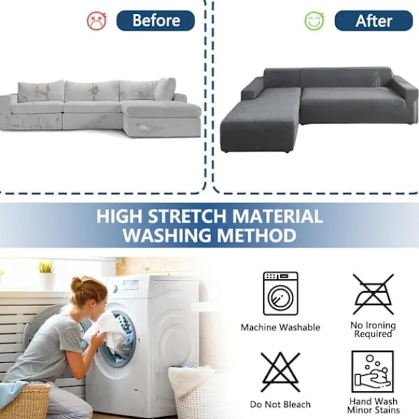 Förbättrad: Det L-formade sofföverdraget är tillverkat med den senaste vattenavvisande tekniken som kan skydda din soffa från oavsiktliga spill och dagliga fläckar. Bra val för hem med barn och husdjur. Detta sofföverdrag skyddar inte bara dina möbler, det fräschar upp dem och säkerställer att de håller i många år. Finns i en mängd olika färger för att passa alla hemstilar.