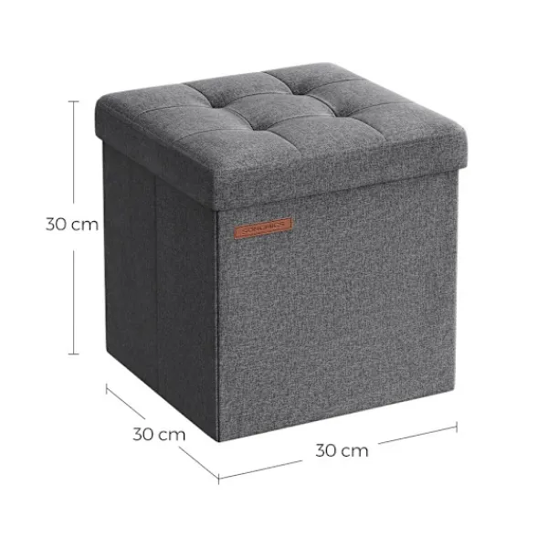 Denna stilrena fotpall kombinerar bekvämlighet och funktionalitet på ett smart sätt. Den kompakta storleken på 30 x 30 x 30 cm gör den perfekt för små utrymmen, samtidigt som den erbjuder praktiskt förvaringsutrymme för böcker, kläder eller andra vardagsföremål. Den mjuka sittdynan med 15 mm tjockt skum ger en behaglig sittupplevelse, vilket gör den idealisk att använda som extra sittplats eller fotstöd i vardagsrummet, sovrummet eller hallen.