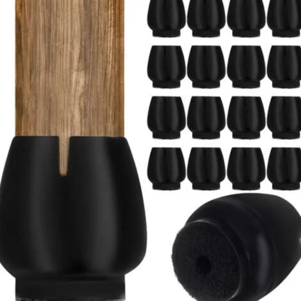 Skyddar GolvetUndvik repor och skador på dina golv med dessa praktiska stolbensskydd. Perfekta för att bevara både parkett och mattor, samtidigt som de dämpar ljudet när du flyttar dina stolar.Mjukt och SnyggtDessa överdrag är klädda med mjuk filt i samma färg som det slitstarka, svarta silikonmaterialet. De behåller sin form och färg över tid, vilket gör dem till en stilren lösning för alla rum.Mångsidig AnvändningOavsett om det gäller köket, vardagsrummet eller terrassen så passar dessa skydd perfekt. De är även idealiska för offentliga miljöer som hotell, restauranger, barer samt skolor och dagis där barn ofta drar stolar utan att lyfta dem.Vattentäta och LättsköttaTillverkad av vattentätt material, går dessa skydd enkelt att ta av och rengöra vid behov.Specifikationer:
