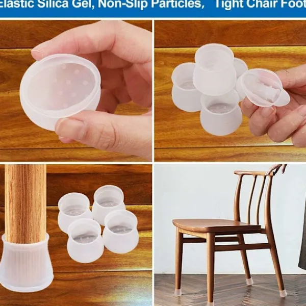 ”Specifikationer: * Material: Silikon + PVC * Storlek: 4 * 30mm (ungefär) * Valfri kvantitet: 16st Paketinnehåll (valfritt): Paketinnehåll: 16 * bordsbenskydd * Färg: vit Den halkfria golvstoppningen förhindrar repor och buller utan att lämna några spår. Den flexibla silikonboxen kan tas bort enkelt på och ger stolsbenet ett stadigt grepp som en handske. * Inte lätt att falla av: denna stol glider, fotkapslarnas spetsar behöver inte limmas, är lätta att linda in och inte lätta att falla av. Lämna filtgliden på Glid din stol / bord smidigt. * Material: Robust mjuk silikon, säker för barn och husdjur, lämplig för många typer av möbler: matstol, barstol, uteplatsstol , Köksstolar, bistrostolar i metall, skrivbordsstolar etc. * Design: Dessa tillverkade av transparent silikongel Trötta stols-bords-benskydd passar in i alla typer av heminredning. ”