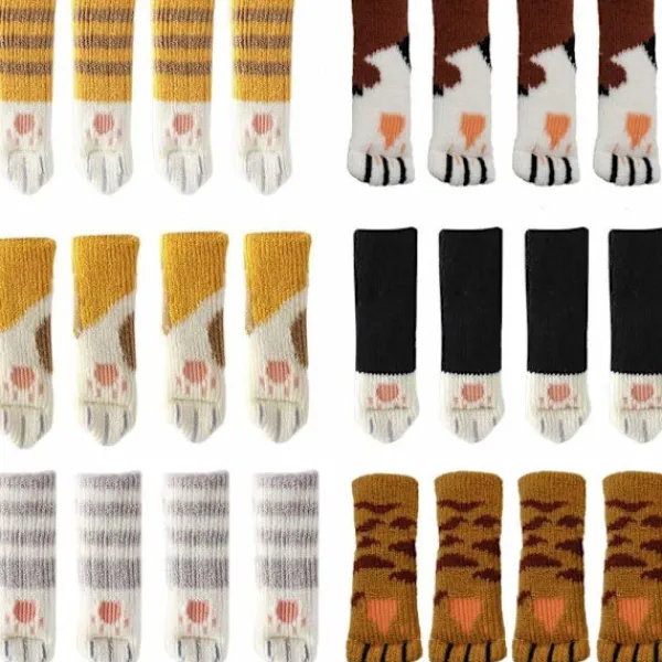 【Material】Tillverkade av högkvalitativt akryltyg, lätta att rengöra, kan återanvändas flera gånger. 【Design】Inkluderar 6 olika designer, vilket ger dig flest valmöjligheter. 【Användning】Lämpliga för de flesta former av möbelben som: stolar, bord, skrivbord, skåp etc. Används ofta i vardagsrum, sovrum, arbetsrum, matsal och bokhylla. Det är det perfekta valet för heminredning, speciellt för kattälskare. 【Användning】Dessa stolsstrumpor kan lösa bullerproblem och skydda ditt golv från friktionsskador.