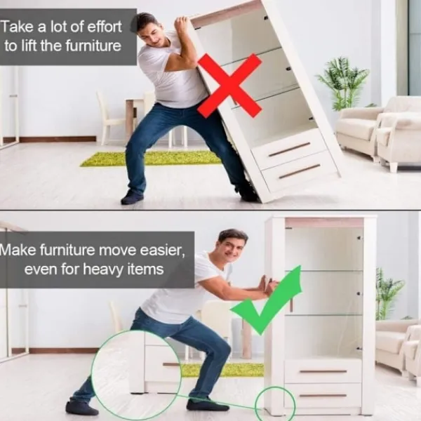 Minska buller: Teflon möbeltassen är mycket lämplig för att flytta tunga föremål. Den kan minimera friktionsmotståndet för dina möbler och därmed erbjuda en exceptionell glidförmåga. Se till att möblerna glider försiktigt och tyst från golvet, vilket minskar buller vid förflyttning