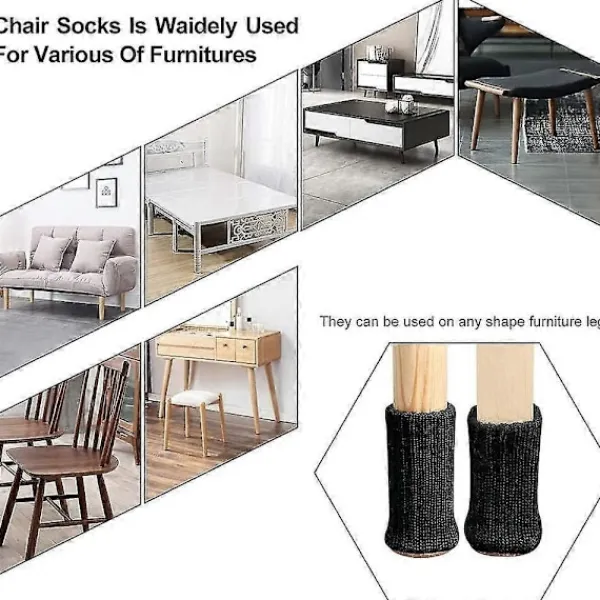 Mångsidig Dessa möbelbensstrumpor är lämpliga för de flesta former av möbelben, runda, fyrkantiga, ovala etc. Den kan även användas på skrivbord, kontorsbord och andra typer av möbler.