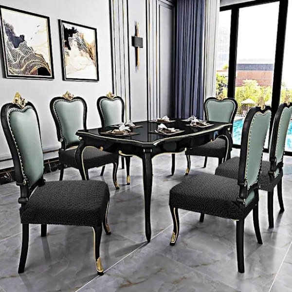 Högkvalitativt material för stolsöverdrag: Matstolsöverdrag i modernt jacquardtyg med vattentät beläggning är det perfekta valet för matstolsöverdrag. Det kan förhindra vattenfläckar och drycker från att fläcka din stol, vilket minskar antalet gånger du behöver rengöra stolsöverdrag.