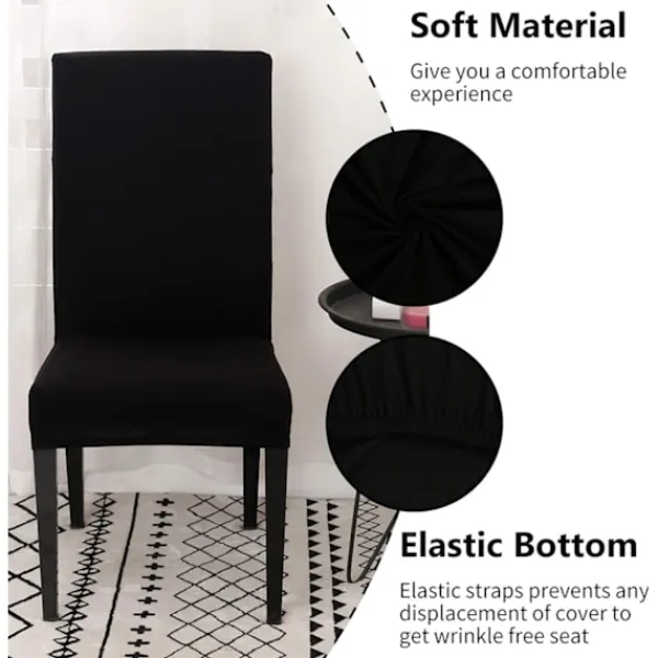 HAR DU FORTFARANDE DINA GAMLA STOLAR? Det är dags att ge dem ett nytt utseende till lägsta kostnad. Restaurangstolsöverdrag kan fräscha upp dina gamla stolar, förlänga stolens livslängd och spara pengar. Mycket viktigt är att det är mycket billigt och prisvärt att genomföra.En mängd olika stilar finns tillgängliga. Den kan ge din gamla eller fula stol ett nytt utseende. Skydda din stol från repor, fläckar och skador. Eftersom stolsöverdraget är lätt att ta bort sparar det besväret med att rengöra stolen. Du behöver bara ta bort stolsöverdraget och kasta det i tvättmaskinen för att enkelt slutföra rengöringen. Förhindra att din stol klotteras av barn eller bits av husdjur.Lämplig för de flesta stolar. Rygghöjd: 17,7~25,6 tum(45~65cm); Sitslängd och bredd: 15~17,7 tum(38~45cm). Kontrollera måttguiden och mät dina stolar därefter innan du beställer.Mjukt material, bekvämt och skrynkelfritt, ingen strykning krävs. Stretchbart material, stretch som återhämtar sig snabbt, säker passform med insydd elastisk fåll. Maskintvättbar, lätt att rengöra. Hög elasticitet, hållbar och långvarig, fräscha upp din inredning.Matstolsöverdrag passar de flesta parsonsstolar. Den kan användas för hotell, bröllopsbankett, middag, möten, kök, konferenser, restauranger, fester, ceremonier, familjens matsal dekoration, etc.