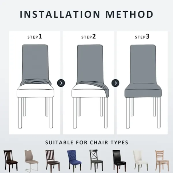 Lätt installation och rengöring: Följ våra installationsinstruktioner för installation på bara tre steg. Elastiskt band som gör att det sitter tätt på stolen utan att glida. Maskintvättbar i kallt vatten utan strykning, häng för att torka. Försvinner inte.