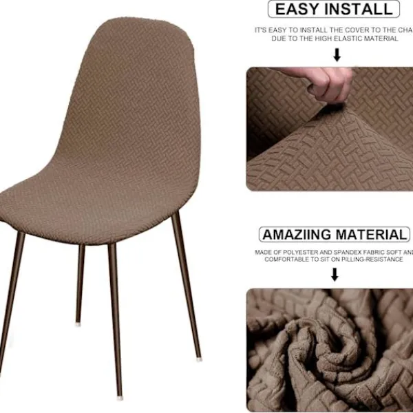 Stretch Skandinaviska Stolsöverdrag Set om 4 Moderna Matstolsöverdrag Tvättsbart Universal Köksstolsöverdrag Hemköksdekoration, Diagonal, Kamel