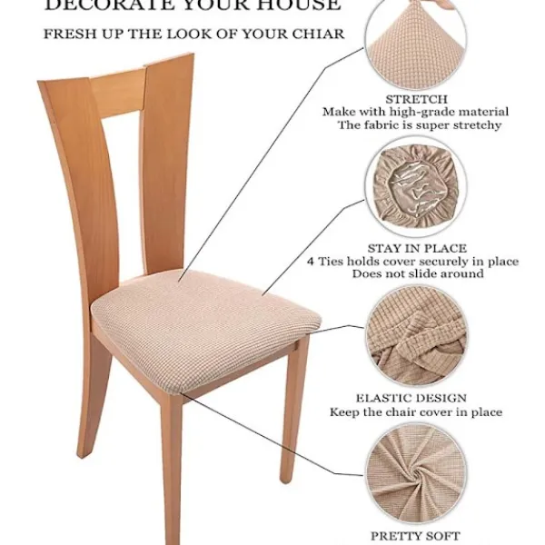 Snygg och enkel stil, utmärkt val för att dekorera vardagsrum, restauranger, kök, hotell, bröllop och andra tillfällen. Den elastiska botten och designen med 4 remmar kan förhindra att stolsöverdraget glider.