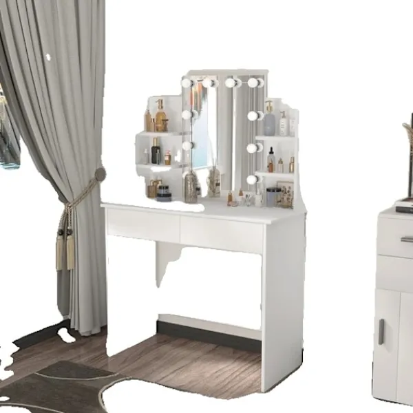 - Elegans och mångsidighet: Med sin enkla och eleganta design kommer detta sminkbord med spegel och ljus utan ansträngning komplettera vilken inredning som helst. Det kan användas som sminkbord, hemmakontorsskrivbord eller ges som en tankeväckande present.