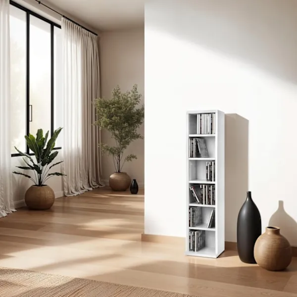 - Sammanlagt 6 hyllplan – Material: MDF med plastbeläggning