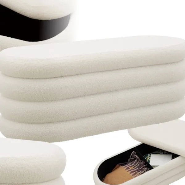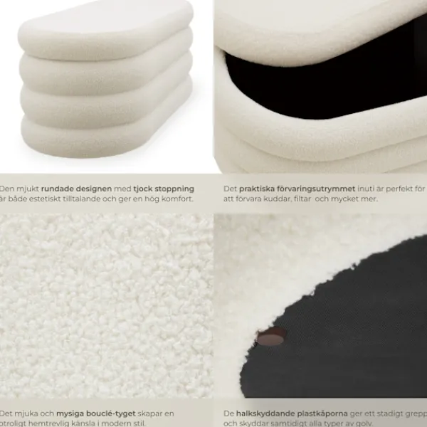 - Praktisk sittbänk med förvaring i mjukt och lättskött boucléöverdrag