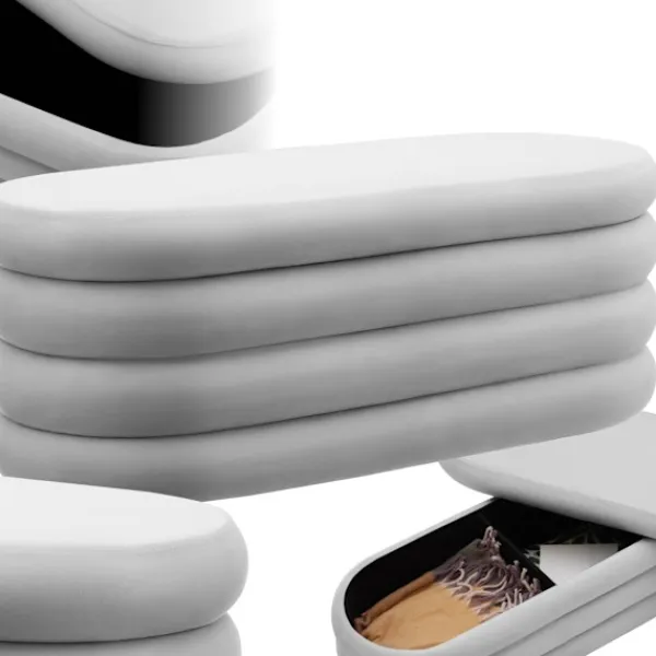 Den eleganta sittbänken gör det möjligt för dig att effektivt förvara dina saker utan att behöva ge avkall på stil och komfort. Under det avtagbara locket finns ett generöst förvaringsutrymme, uppdelat i två lika stora fack, perfekta för att organisera kuddar, filtar eller andra tillbehör. Förvaringsbänken är därmed inte bara en stilig detalj, utan framför allt ett verkligt måste för den som värdesätter ett organiserat hem.