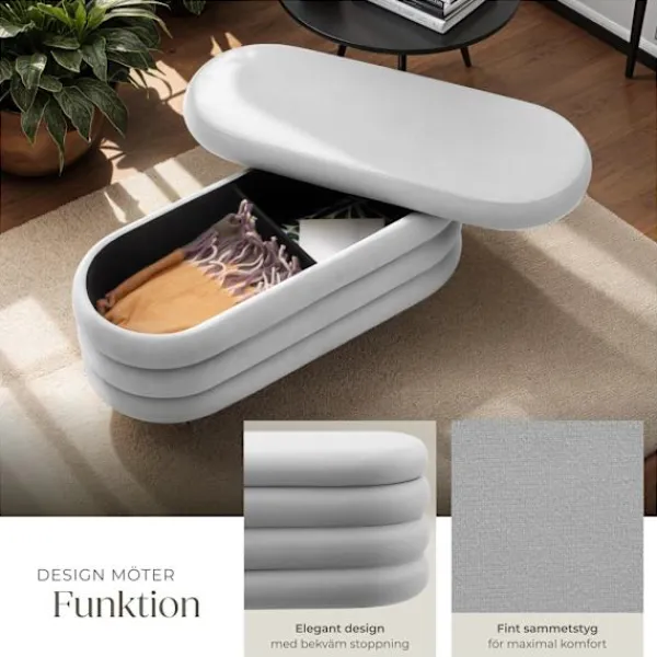 - Praktisk sittbänk med förvaring i mjukt och elegant sammetstyg