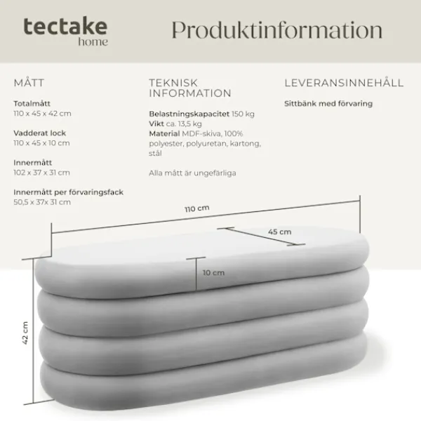 - Totalmått (BxDxH): ca. 110 x 45 x 42 cm