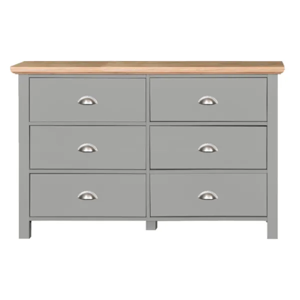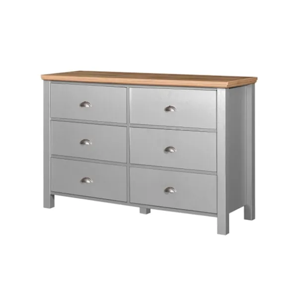 Denna 6 lådiga byrå kommer omonterad men det medföljer en bra monterings beskrivning. Lådorna går på rullskenor som är lätta att hantera. Bra djup i lådorna gör att man får plats med mycket. Vikten i lådorna skall inte överstiga 8 kg. Lådornas framsida har snygga handtag i köpmansdisk stil och materialet är MDF skivor som är lackerade.