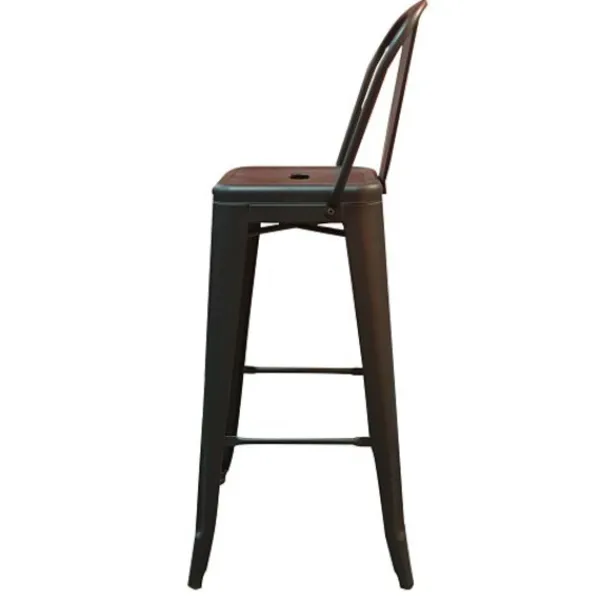 Denna fransk inspirerade bar pall i plåt passar in på de flesta ställen, med ett högt ryggstödet som ett extra stöd. Designen är moder tidsenlig som gör att den är mycket populär hos de flesta.