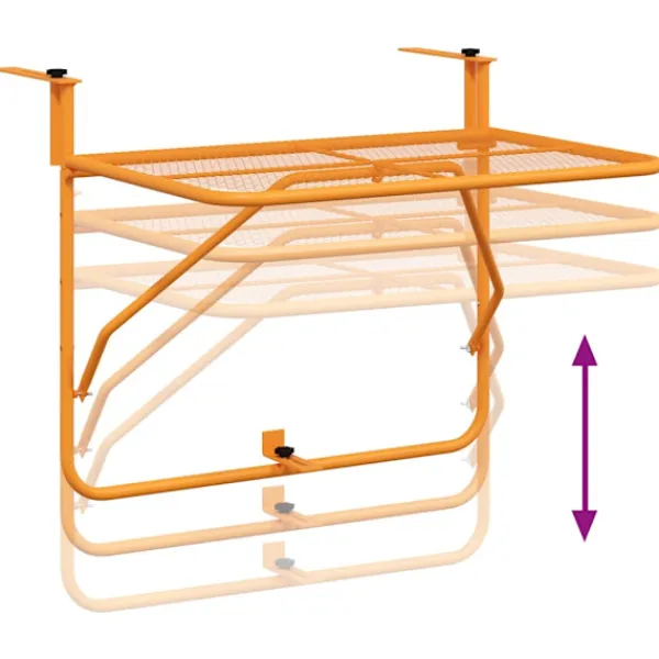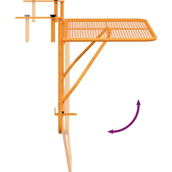 Detta balkongbord blir ett fint tillskott på din balkong. Det kan även enkelt fällas ihop för att spara plats när det inte används. Mångsidig design: Detta balkongbord är perfekt för din veranda, däck, räcke eller balkong, oavsett om du använder det som ett soffbord för att placera dina drycker, eller som en bekväm yta för att hålla föremål som trädgårdsredskap och krukväxter.Premium material: Sidobordet är tillverkat av stål, vilket är hållbart, lätt att underhålla och väderbeständigt. Dess nätdesign och e-belagda finish utstrålar en känsla av industriell charm på din balkong.Platsbesparande: Bordet tar upp mycket lite golvyta när det används och kan fällas ner platt med minimal ansträngning när det inte längre behövs, vilket möjliggör enkel förvaring. Observera:För att förlänga livslängden på dina utemöbler rekommenderar vi att du skyddar den med ett vattentätt överdrag.