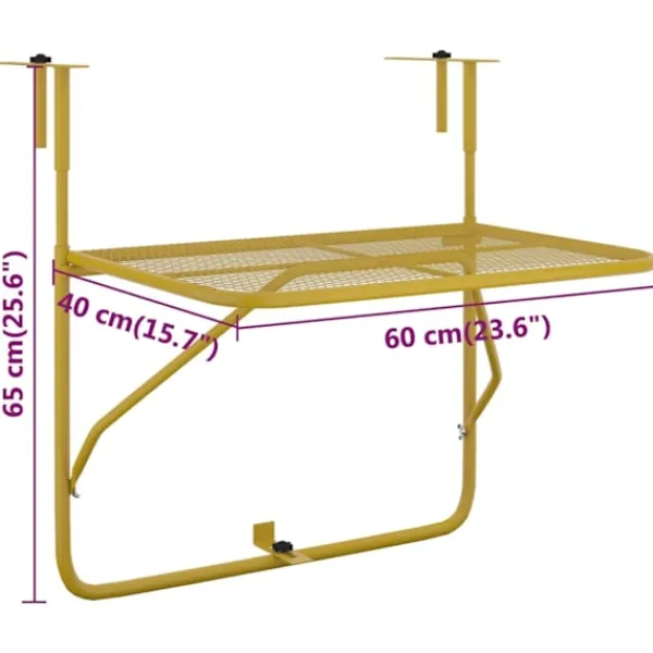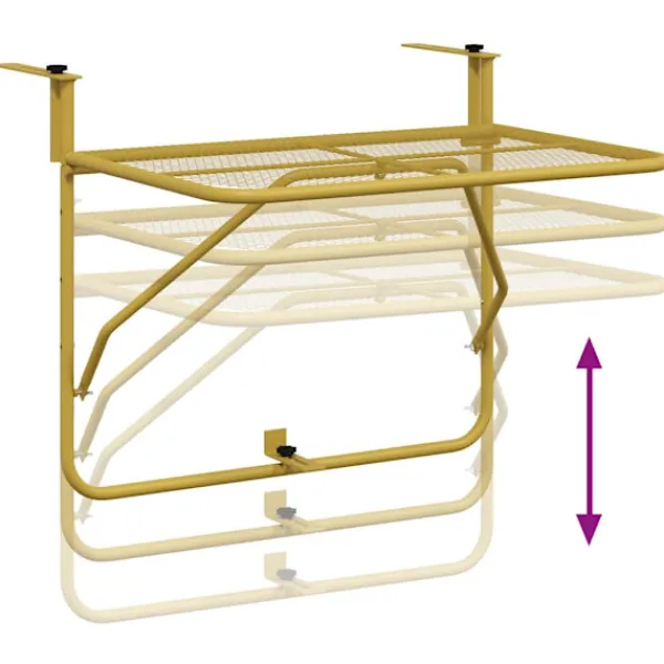Detta balkongbord blir ett fint tillskott på din balkong. Det kan även enkelt fällas ihop för att spara plats när det inte används. Mångsidig design: Detta balkongbord är perfekt för din veranda, däck, räcke eller balkong, oavsett om du använder det som ett soffbord för att placera dina drycker, eller som en bekväm yta för att hålla föremål som trädgårdsredskap och krukväxter.Premium material: Sidobordet är tillverkat av stål, vilket är hållbart, lätt att underhålla och väderbeständigt. Dess nätdesign och e-belagda finish utstrålar en känsla av industriell charm på din balkong.Platsbesparande: Bordet tar upp mycket lite golvyta när det används och kan fällas ner platt med minimal ansträngning när det inte längre behövs, vilket möjliggör enkel förvaring. Observera:För att förlänga livslängden på dina utemöbler rekommenderar vi att du skyddar den med ett vattentätt överdrag.