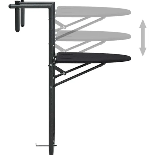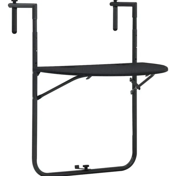 Detta hängande balkongbord blir perfekt på din balkong, det kan fungera som ett soffbord att placera drinkar på eller en bekväm yta att förvara föremål som trädgårdsverktyg eller krukväxter. Det är tillverkat i plast, är väderbeständigt och enkelt att rengöra. Dess rottingdesign bidrar till en naturlig charm på din balkong. Med dess stadiga stålram är bordet högst stabilt. Dessutom kan höjden justeras i 3 nivåer för att tillgodose dina behov. Bordet kan fällas ihop för att spara utrymme när det inte används.