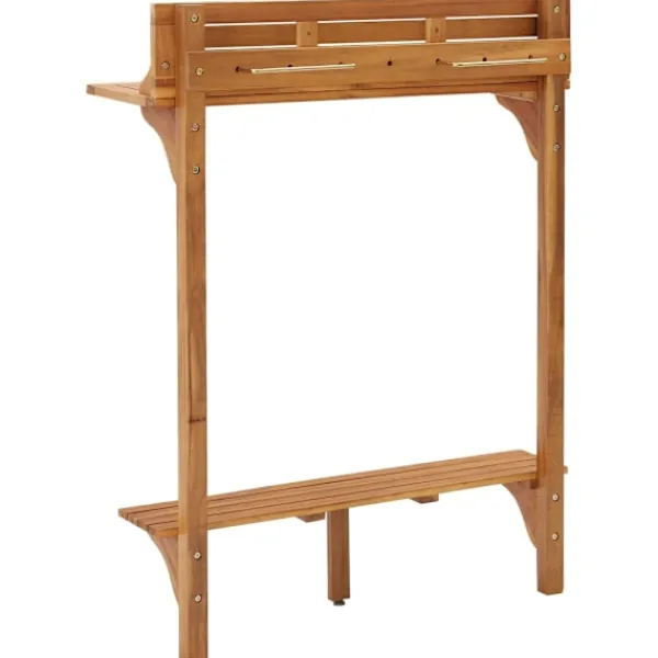 Detta träbord blir praktisk och dekorativ detalj på din uteplats! Detta bistrobord är tillverkat av massiv akaciaträ, ett tropiskt lövträ, som gör det stabilt och hållbart. Tack vare bordsskivan i massivt trä kan det här bordet också användas som ett växtställ för att visa dina krukväxter, örter och blommor eller andra dekorationer, särskilt på mindre balkonger eller uteplatser. Det har också fotstöd för utmärkt komfort. Detta träbord kan även fungera som ett matbord med mera. Metallfästen: De medföljande metallfästena kan användas för att fästa bordet på balkongräcket. Viktigt: Färger och ådringar varierar från möbel till möbel, vilket gör varje produkt unik. Leveransen är slumpartad, vilket säkerställer varje produkts exklusivitet och individualitet.