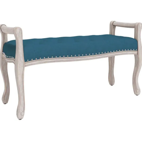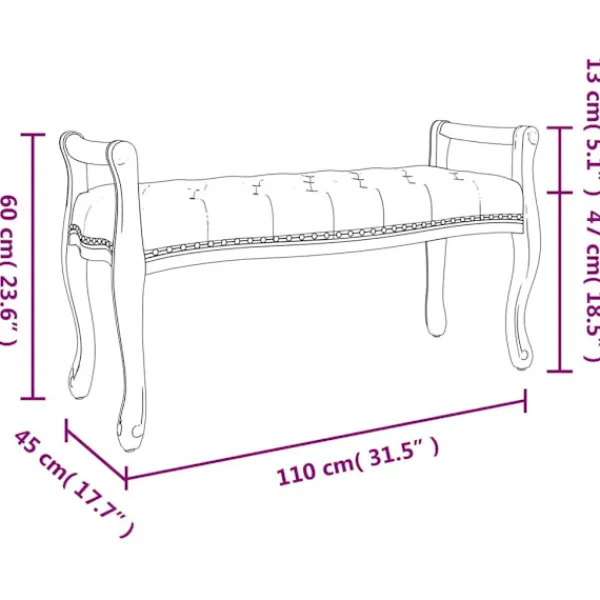 Denna bänk blir ett blickfång samtidigt som den har en extra sittplats. Mjuk sammet: Denna hallbänk är gjord av sammet. Sammet är ett mjukt, lyxigt tyg och känns igen på sitt täta, jämnt skurna fiber som är lämpligt att ta en tupplur på. Sammetstyg har en distinkt mjuk känsla, vilket gör det behagligt att röra vid.Stabil att sitta på: Träbenen ger produkten ett naturligt och behagligt utseende samtidigt som stabiliteten säkerställs. De halkfria möbeltassarna som är fästa på bänken förhindrar repor på golvet.Mångsidig användning: Denna bänk kan användas i foajéer och entréer och fungerar också som en bekväm pianobänk. Det har också extra utrymme för dig att vila fötterna på och fungerar bra med soffor. Dessutom, har den gott om utrymme för att organisera kuddar, filtar, eller tidskrifter.Fransk vintagestil: Bänken med en vacker tuftad topp utstrålar en rustik glamour i ditt hem. Den tjocka vadderade skumdynan ger en mjuk och avslappnad sittupplevelse.