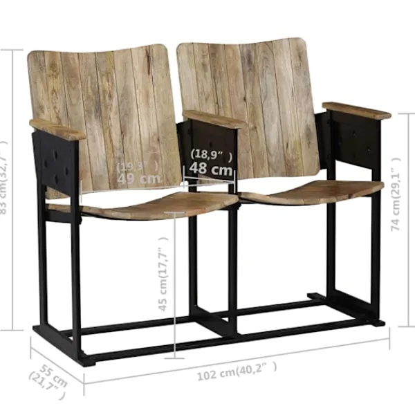 Denna bioinspirerade 2-sitsbänk i trä kombinerar stil med funktionalitet och blir ett snyggt tillägg i din heminredning. Den är ergonomiskt utformad för höjd sittkomfort. Sitsarna, armstöden och ryggstöden på denna bänk är handgjorda i mangoträ som är massivt, stabilt, hållbart och vackert och hantverksskickligheten bidrar till dess spektakulära retro stil. Varje steg i processen utförs med största noggrannhet, vare sig det är polering, målning eller lackering. Hantverksskickligheten och de vackra träådringarna gör varje möbel unik och något annorlunda från de andra. Den robusta stålramen bidrar till såväl bänkens stabilitet som dess vackra industriella stil. Monteringen är enkel. Viktigt: Färger och fibrer kan variera från produkt till produkt, vilket gör varje bänk unik. Leveransen är slumpartad, vilket säkerställer varje produkts exklusivitet och individualitet.