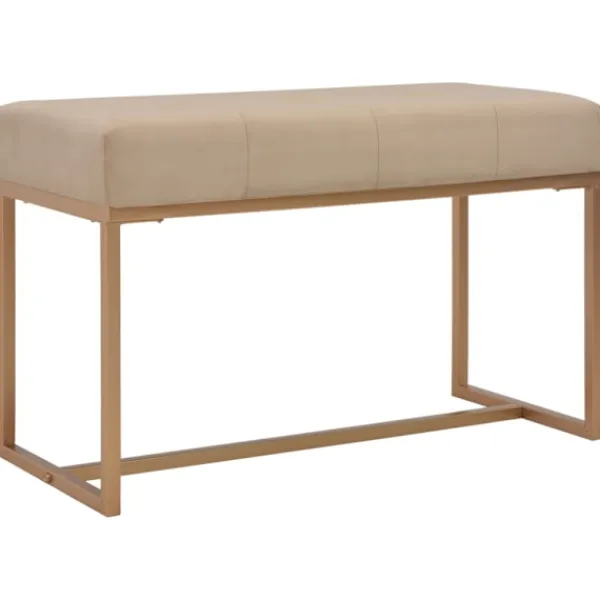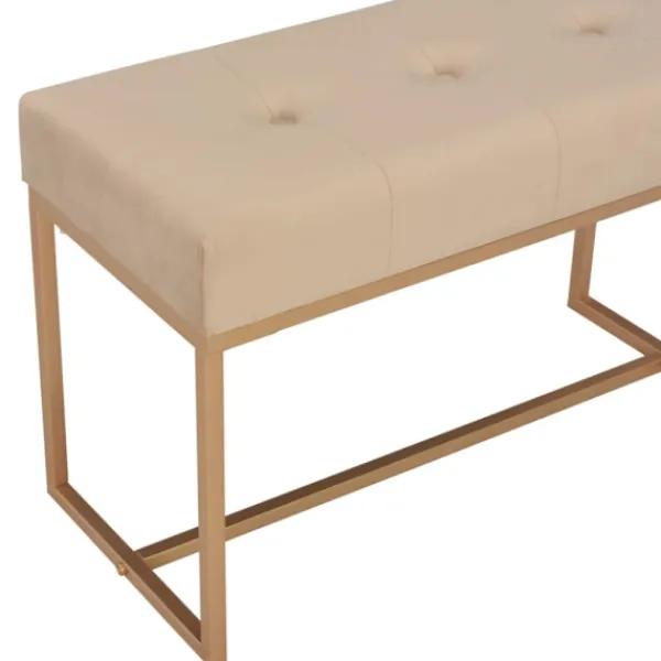 Dess beigea sammetsklädsel är mjuk och högst bekväm samtidigt som den ger din inredning en färgglad detalj, dessutom är benen i pulverlackerat järn väldigt stabila och hållbara. Vår hallbänk blir en elegant dekoration i din inredning och en oumbärlig del av ditt rum.