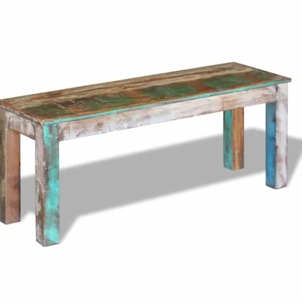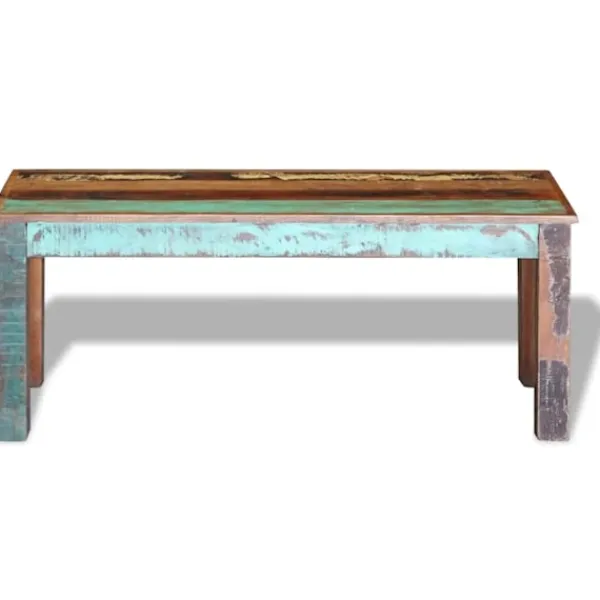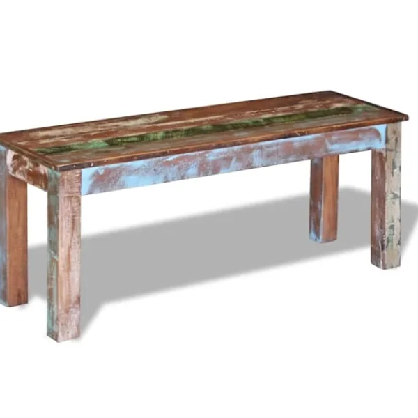 Den här bänken i antik stil blir ett unikt tillskott till hemmet. Den massiva träkonstruktionen gör bänken stabil och lämplig för daglig användning. Den här bänken i vintagestil är tillverkad av massivt återvunnet trä, vilket gör att varje möbel är unik och skiljer sig lite från andra. Möbler av återvunnet trä har karaktärsdrag från olika träslag såsom shesham, teak, palisander, mangoträ och akacia. Återvunnet trä är massivt, stabilt, hållbart och vackert. Tecken på nötning och synliga ådringar gör att varje möbel har sin egen historia och ett unikt utseende. Bänken är helt och hållet handgjord och hantverksskickligheten bidrar till den imponerande retrostilen. Varje steg i tillverkningsprocessen görs med stor omsorg, vare sig det gäller hopsättning, polering, målning eller vaxning. Observera: Färgerna varierar på möblerna vilket gör varje möbel unik. Leveransen är helt slumpmässig.