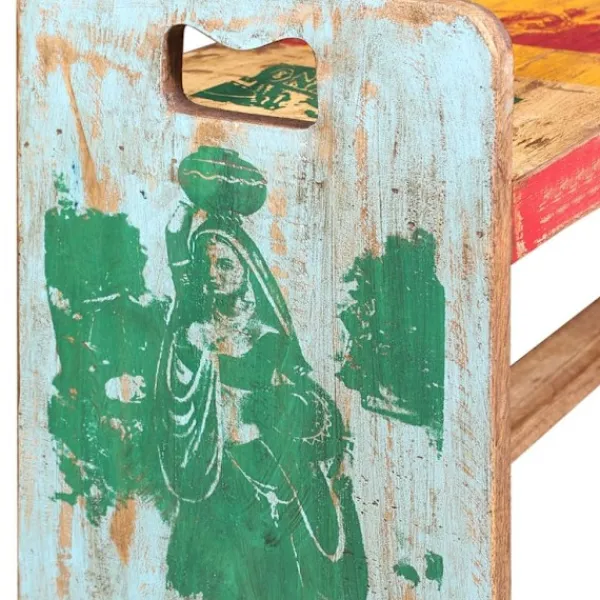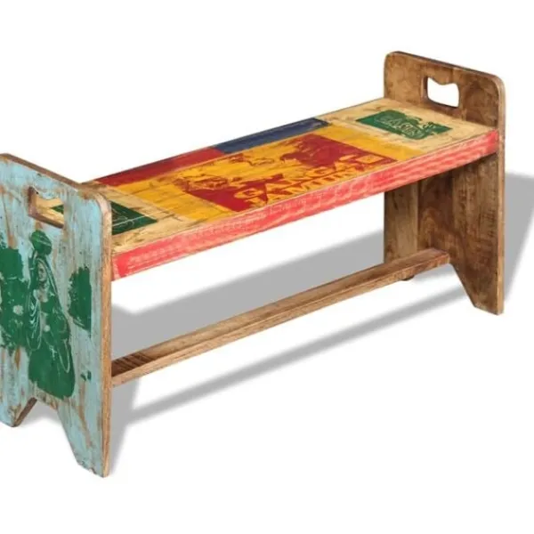 Den här bänken i antik stil kommer att göra ett unikt intryck i ditt hem. Dess massiva träkonstruktion gör den stabil, robust och lämplig för daglig användning. Med ett färgstarkt och dekorativt mönster kommer denna bänk direkt att förbättra din inredning. Den här bänken i vintagestil är tillverkad av massivt återvunnet trä, vilket gör att varje möbel är unik och skiljer sig lite från andra. Möbler av återvunnet trä har karaktärsdrag från olika träslag som sheesham, teak, palisanderträ, mangoträ och akacia. Återvunnet trä är massivt, stabilt, hållbart och vackert. Tecken på nötning och synliga ådringar gör att varje möbel har sin egen historia och ett unikt utseende. Bänken är handgjord och hantverksskickligheten bidrar till den imponerande retrostilen. Varje steg i tillverkningsprocessen görs med stor omsorg, vare sig det är hopsättning, polering, målning eller vaxning. Observera: Färgerna varierar på möblerna vilket gör varje möbel unik. Leveransen är helt slumpmässig.