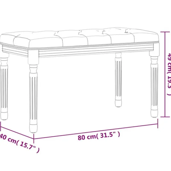 Denna bänk blir ett blickfång samtidigt som den har en extra sittplats. Mjuk sammet: Denna hallbänk är gjord av sammet. Sammet är ett mjukt, lyxigt tyg och känns igen på sitt täta, jämnt skurna fiber som är lämpligt att ta en tupplur på. Sammetstyg har en distinkt mjuk känsla, vilket gör det behagligt att röra vid.Stabil att sitta på: Träbenen ger produkten ett naturligt och behagligt utseende samtidigt som stabiliteten säkerställs. De halkfria möbeltassarna som är fästa på bänken förhindrar repor på golvet.Mångsidig användning: Denna bänk kan användas i foajéer och entréer och fungerar också som en bekväm pianobänk. Det har också extra utrymme för dig att vila fötterna på och fungerar bra med soffor. Dessutom, har den gott om utrymme för att organisera kuddar, filtar, eller tidskrifter.Fransk vintagestil: Bänken med en vacker tuftad topp utstrålar en rustik glamour i ditt hem. Den tjocka vadderade skumdynan ger en mjuk och avslappnad sittupplevelse.