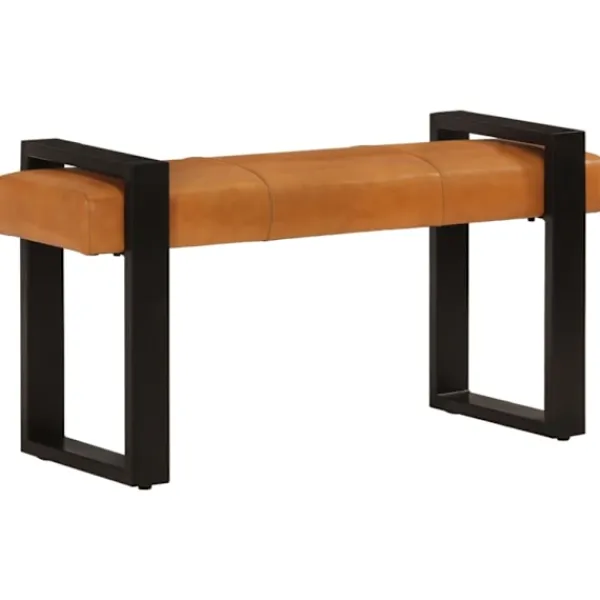 Slappna av på denna bekväma bänk i äkta skinn! Avkopplande sittupplevelse: Hallbänken har en sits av mjukt getskinn, vilket bidrar till en bekväm sittupplevelse. Stabil ram: Matbänken stöds av en pulverlackerad järnram, vilket gör den stabil och robust.Unik design: Den lyxiga ytan och den fantastiska metalltekniken gör bänken unik, full av textur och lager. Observera:Färgerna kan variera från möbel till möbel vilket gör varje möbel unik. Leveransen är slumpmässig, vilket säkerställer varje produkts exklusivitet och individualitet.Varje produkt levereras med en monteringsmanual i lådan för enkel montering.